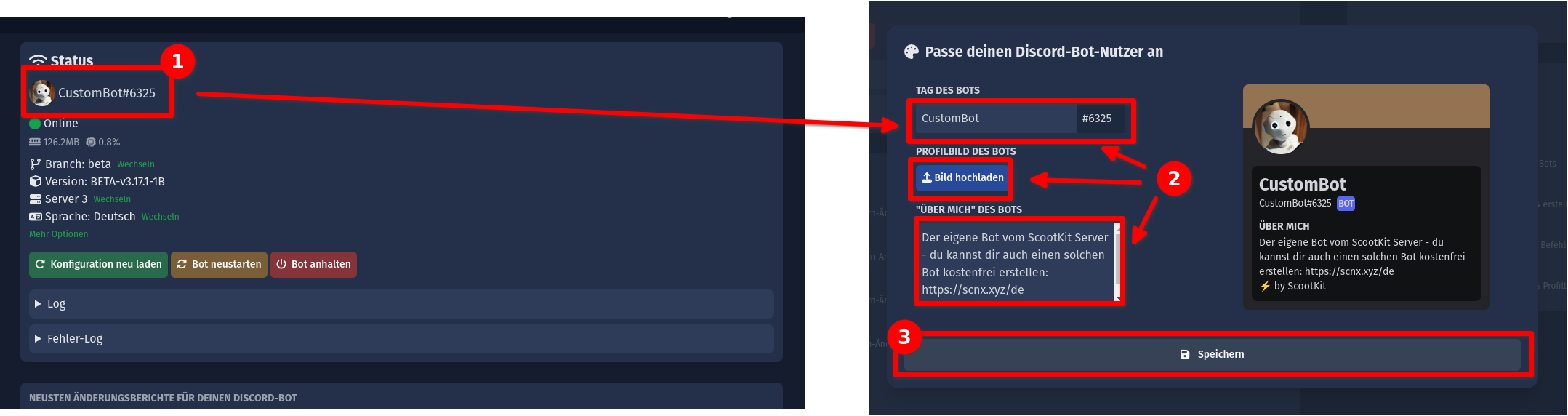 - Speichere die Änderungen. Dein Bot wird automatisch neustarten, um die Änderungen anzunehmen.